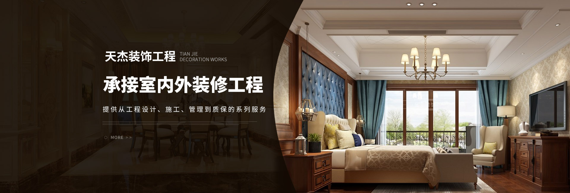 東莞市天杰裝飾工程有限公司自成立以來,業(yè)績逐年穩(wěn)步上升,天杰裝飾工程有限公司主要承接各種室內(nèi)外裝修工程,為滿足各類型工程需要,成立了家裝分公司進(jìn)行配套服務(wù),公司其它業(yè)務(wù)有銷售建筑裝飾材料與其工程配套。我公司提供從工程設(shè)計、工程施工、工程管理到工程質(zhì)保的系列服務(wù)。我公司推崇"綠色裝飾",重視健康與環(huán)保,視質(zhì)量為企業(yè)立足之根本。對質(zhì)量的嚴(yán)格把關(guān),不僅是對客戶利益的保護(hù),也是對我公司利益的保護(hù)。??
